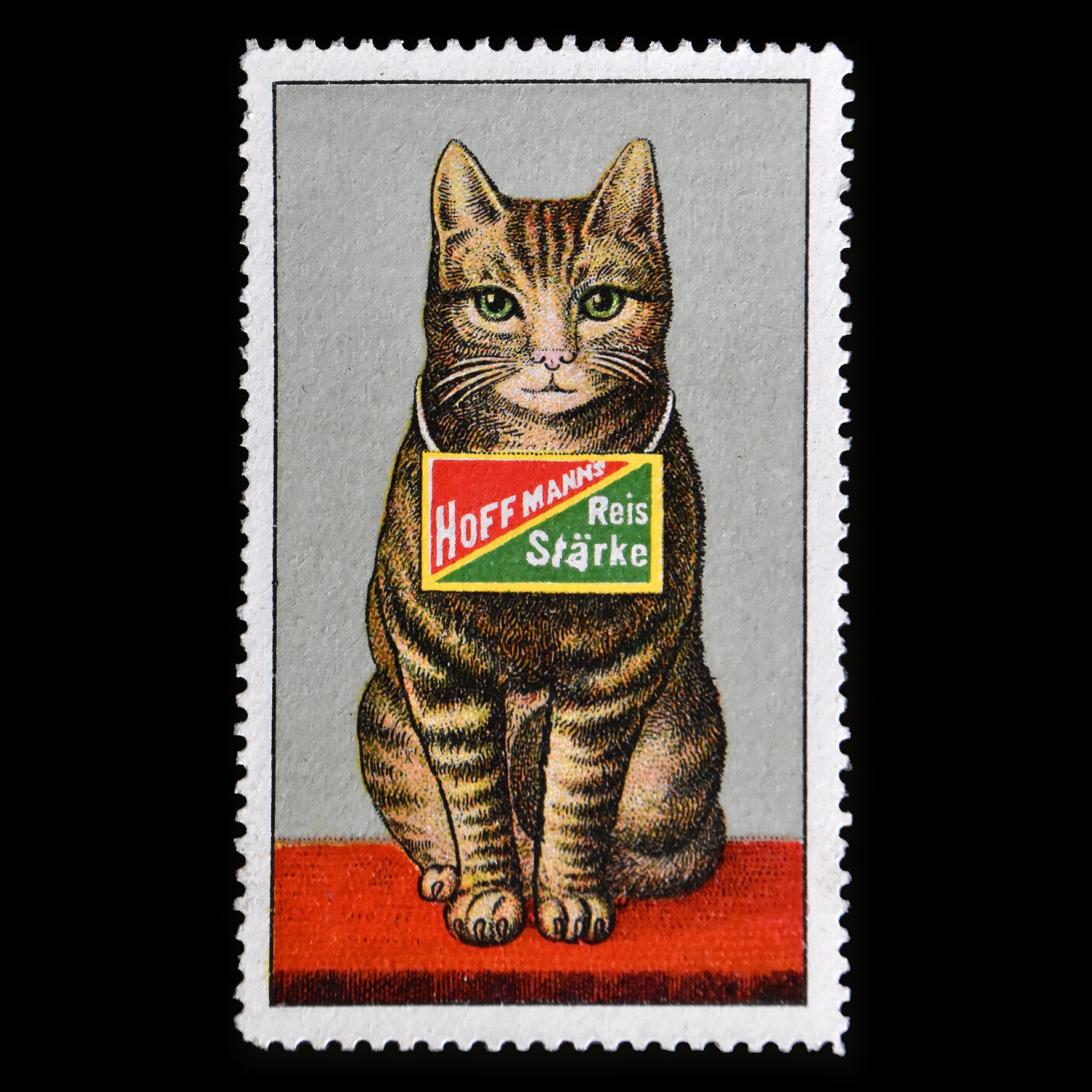 The iconic Hoffmann's Starch cat trademark, designed by Fedor Flinzer was officially registered in 1867. The brown cat version was iconic in the 1930's and 40's, this t-shirt features a cinderella poster stamp version of this design.